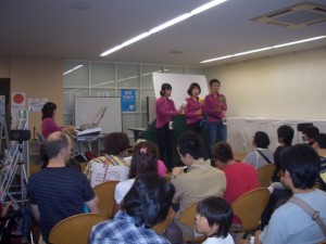 イベント広場の隅のステージで、大道芸人の気分で元気よくパネルシアターショーを行いました。